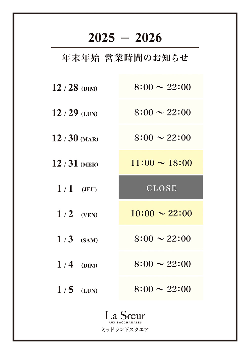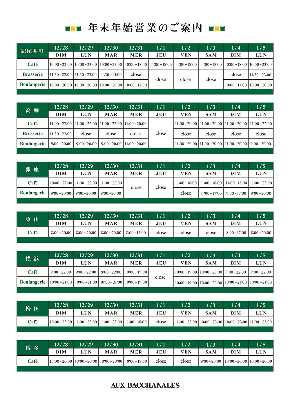 本年もAUX BACCHANALES各店をご愛顧いただき、誠にありがとうございました。